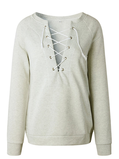 - Pink V-neck Standard Straight Fashion Plain Sweatshirts (Style V100737)