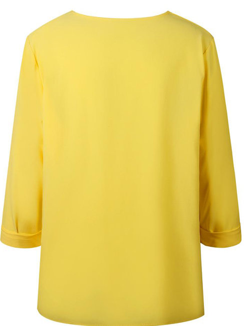 - Yellow V-neck Standard Straight Plain Asymmetrical Blouse (Style V300809)