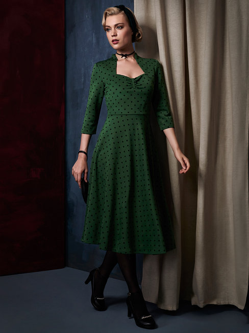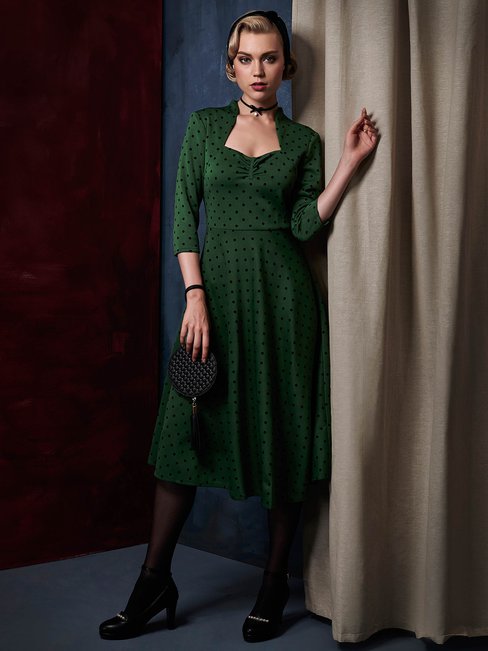 - Green Vintage Expansion Polka Dot Polyester Knee Length Dresses (Style V200002)