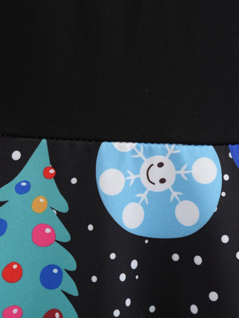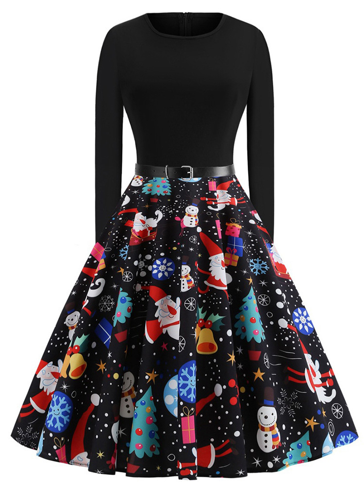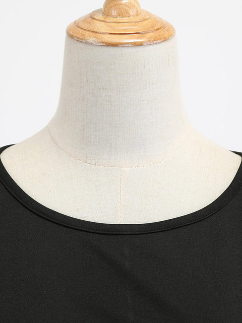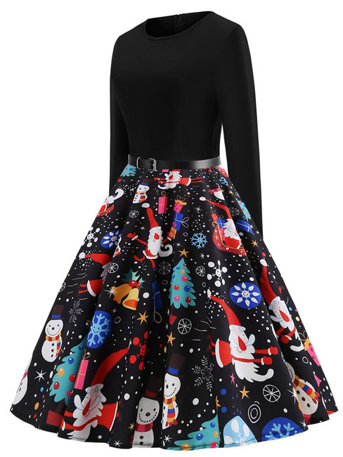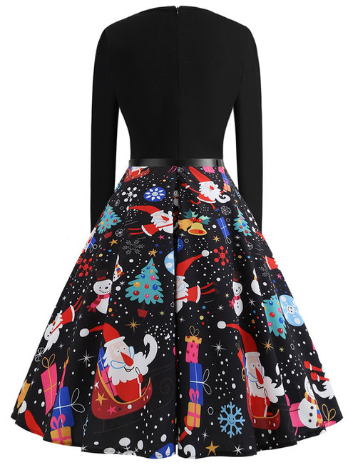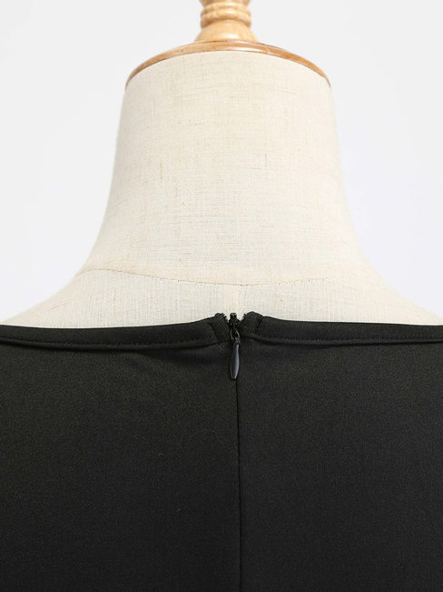 - Black Vintage Expansion Round Neck Patchwork Knee Length Dresses (Style V201133)