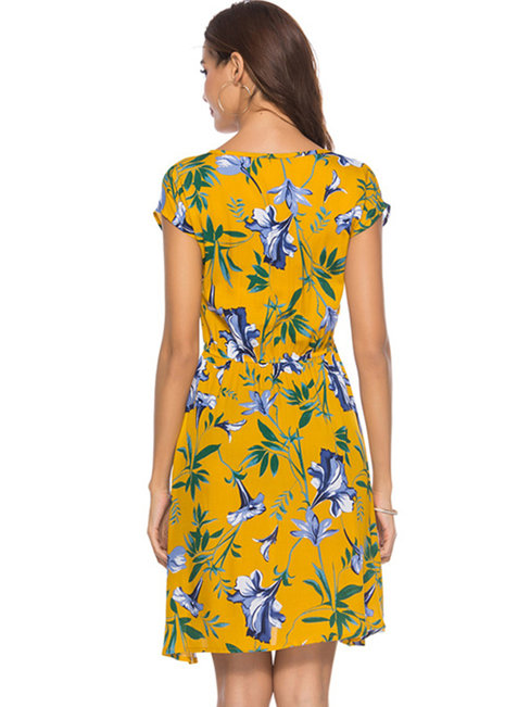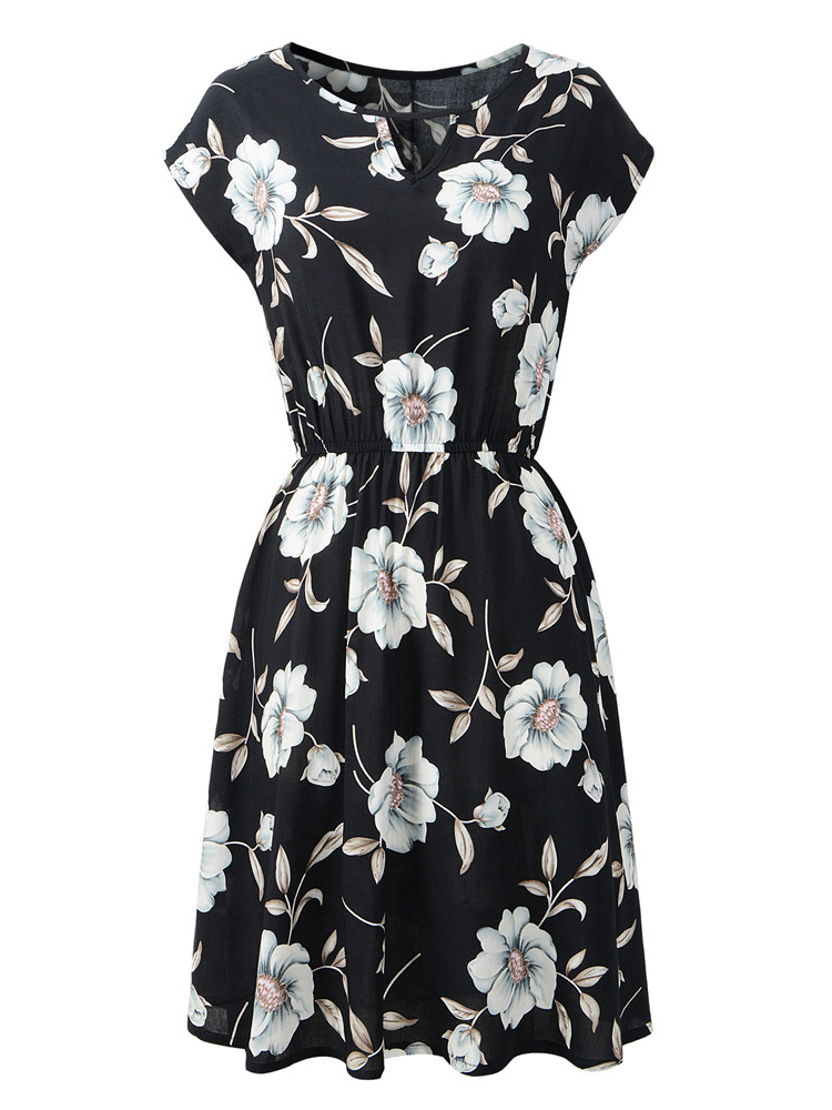 - Black Western A-line Round Neck Floral Print Mini Dresses (Style V200641)