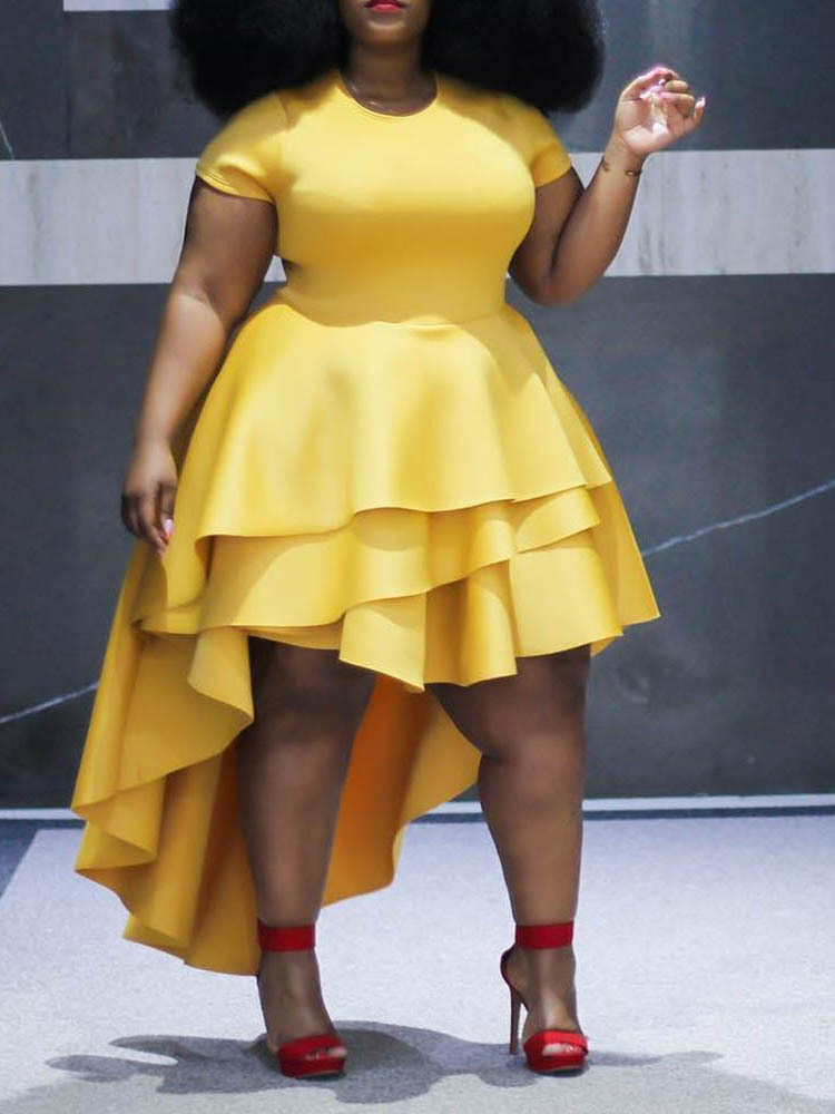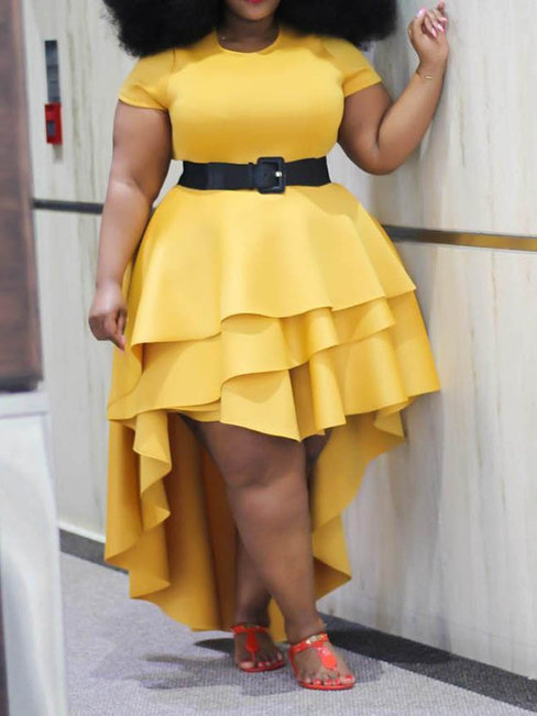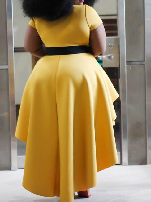 - Yellow Western Asymmetrical Round Neck Plain Asymmetrical Maxi Dresses (Style V201553)