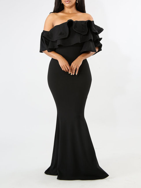 - Black Western Bodycon Off The Shoulder Backless Cotton Blends Bodycon Dresses (Style V200697)