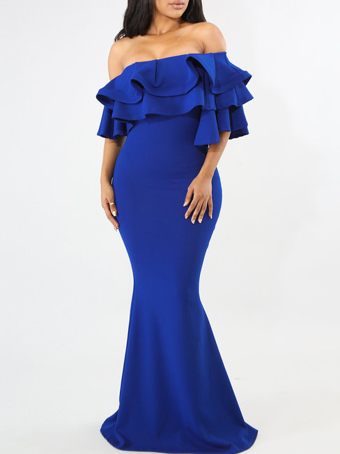 Blue Western Bodycon Off The Shoulder Backless Cotton Blends Bodycon Dresses (Style V200697)