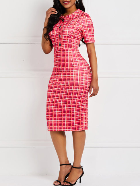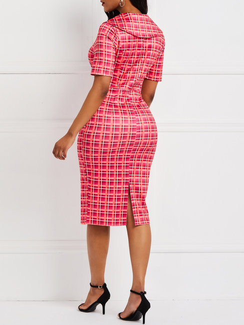 Rose Western Bodycon Plaid Satin Knee Length Dresses (Style V201457)