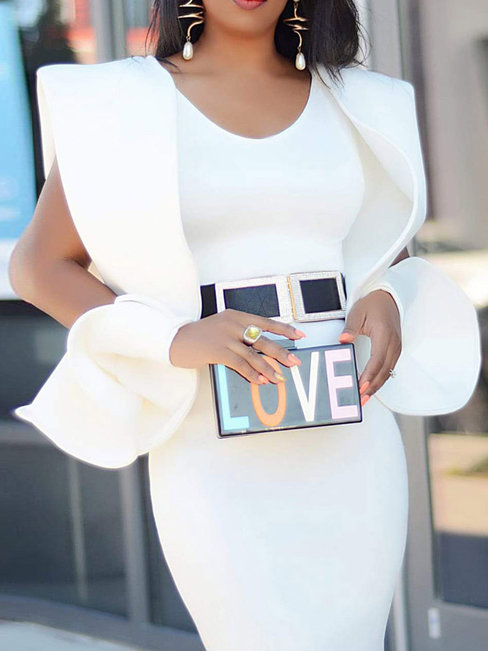 - White Western Bodycon Round Neck Plain Patchwork Knee Length Dresses (Style V201557)