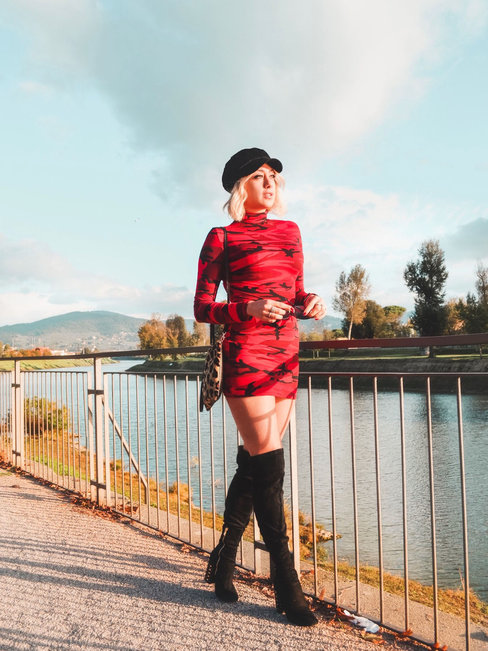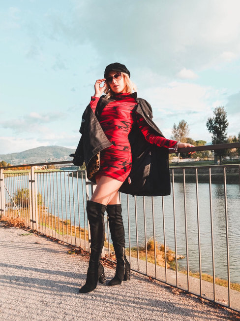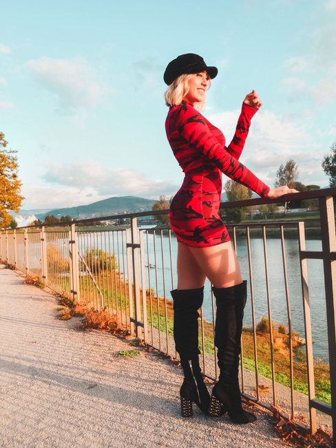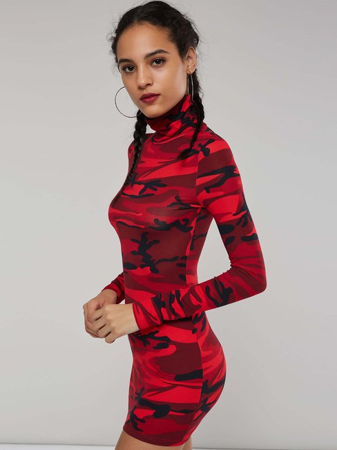- Red Western Bodycon Turtleneck Camouflage Print Bodycon Dresses (Style V200952)