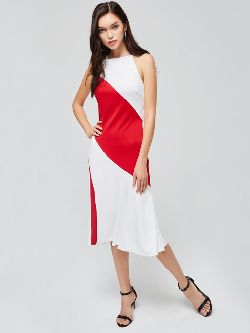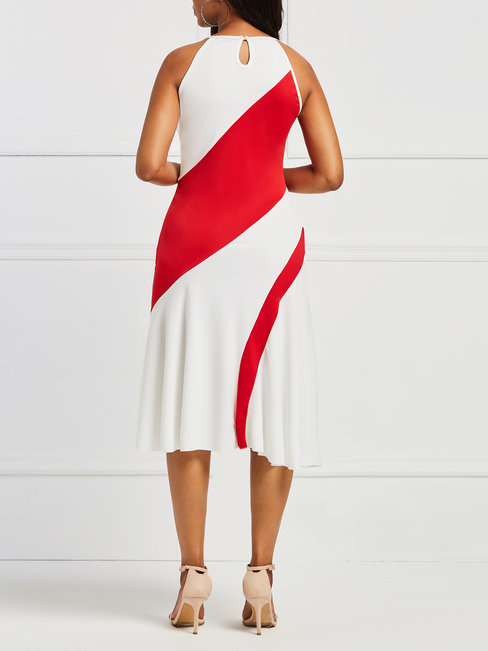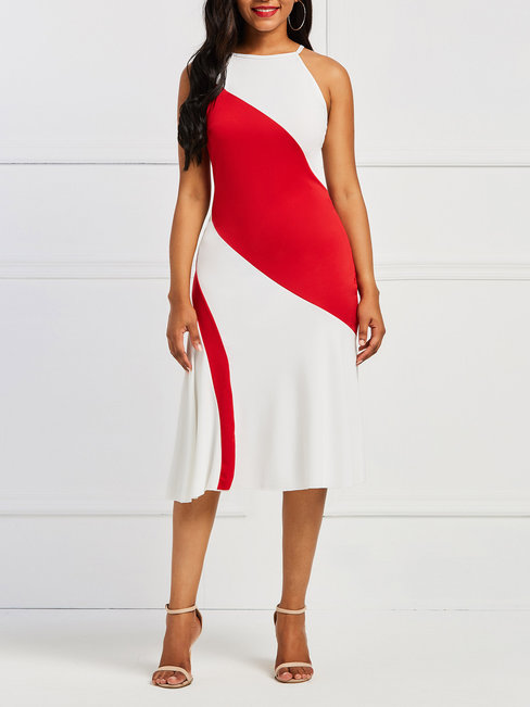 - Red Western Expansion Color Block Hollow Out Knee Length Dresses (Style V200783)