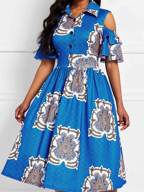 - Dark Blue Western Expansion Geometric Print Satin Midi Dresses (Style V201514)