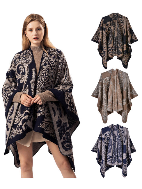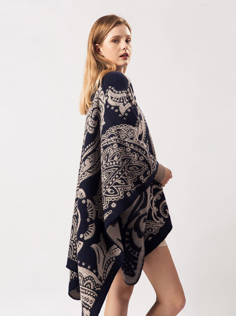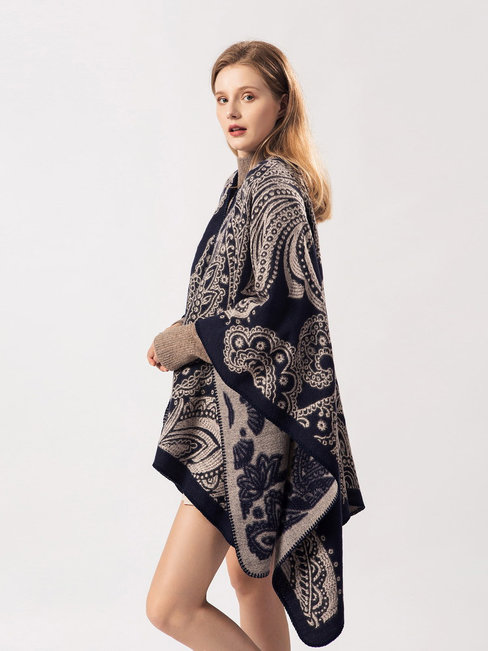 - Camel Western Floral Cashmere Cape (Style V201921)