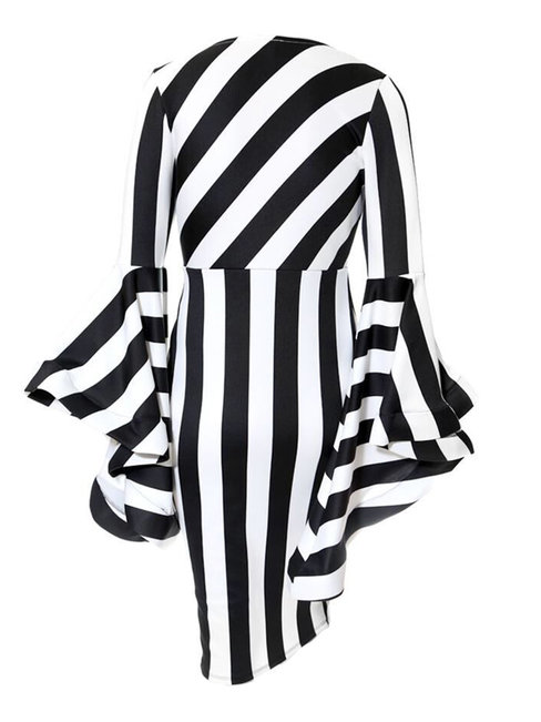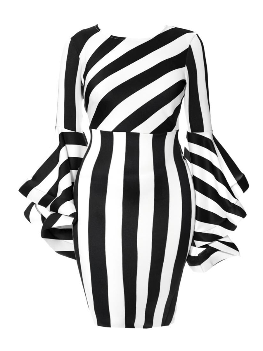 - Black Work Bodycon Round Neck Striped Patchwork Knee Length Dresses (Style V200507)